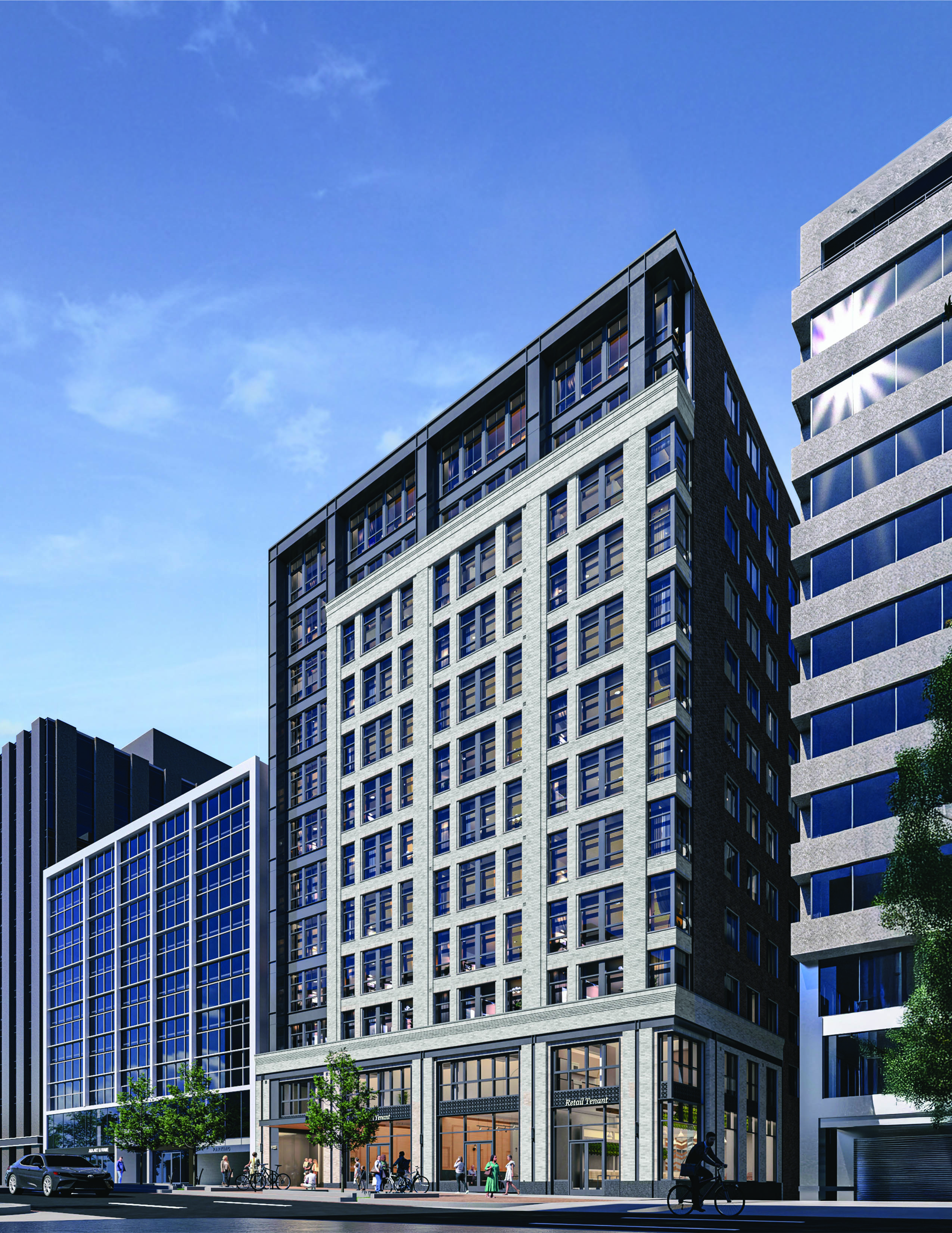 Conversion of a 12-story, 199,200-sf office building into a 13-story, 209-unit residential property above 4,688-sf ground floor retail and three levels of below-grade parking.