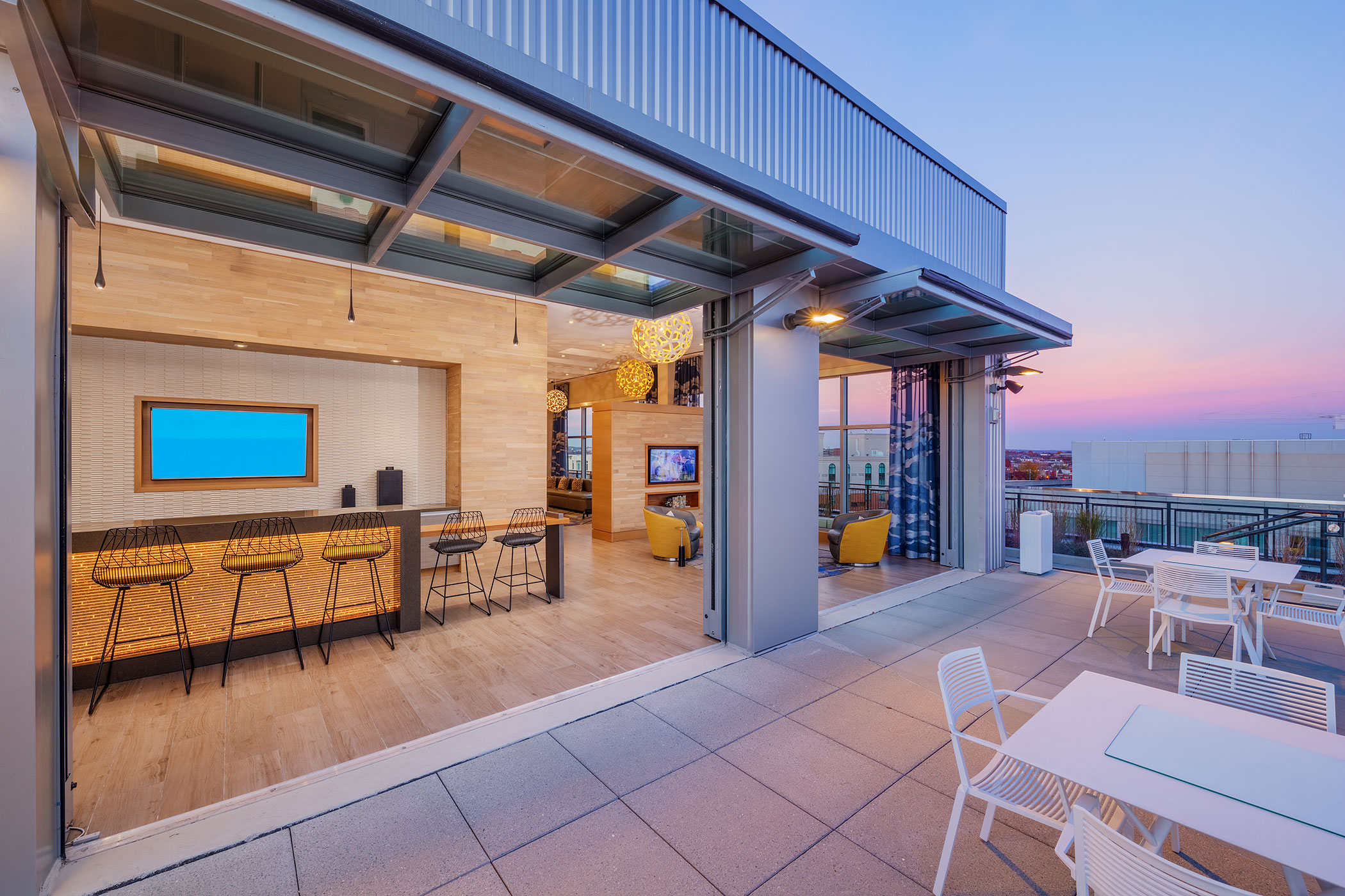 Located in Washington, DC, Insignia on M is a modern, livable structure that is part of a constantly changing, vibrant neighborhood in the southeast quadrant. The building façade includes 4’ wide, glazed projection bays with notched resident balconies. Residents enjoy fantastic views to the Capitol and Nationals baseball stadium, 11,039-sf of ground floor retail, a fitness center with yoga studio, and dog spa. The penthouse level includes accessory use spaces with a kitchenette, pool, and various outdoor seating areas.
